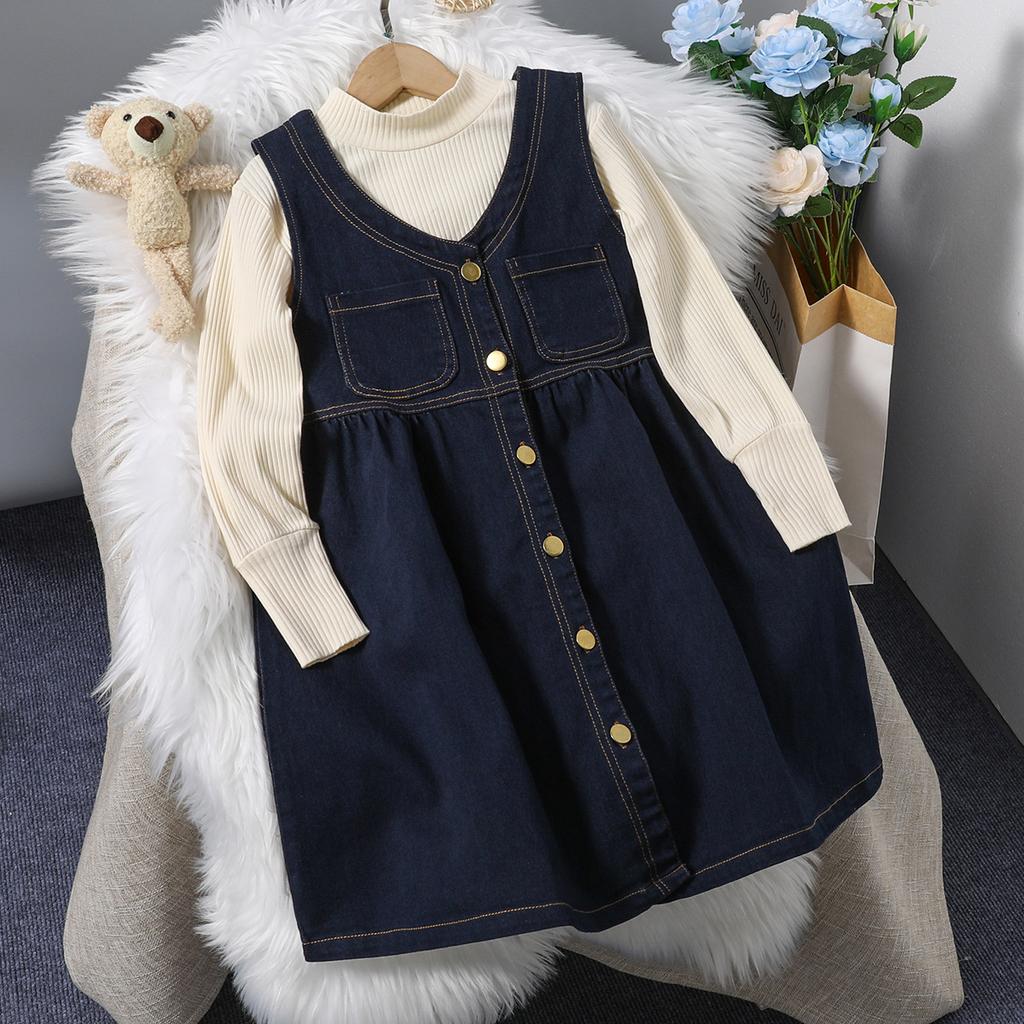Костюм для девочек, весенне-осенний новый детский свободный вариант, корейская джинсовая юбка без рукавов на подтяжках