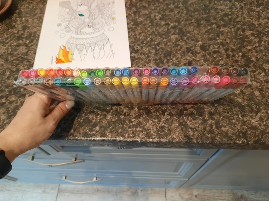 Маркеры очень классные. Пришли довольно быстро, заказывала 27 октября, пришёл товар 15 ноября. В подарок положили белую гелевую ручку и бумагу для заполнения палитры маркеров