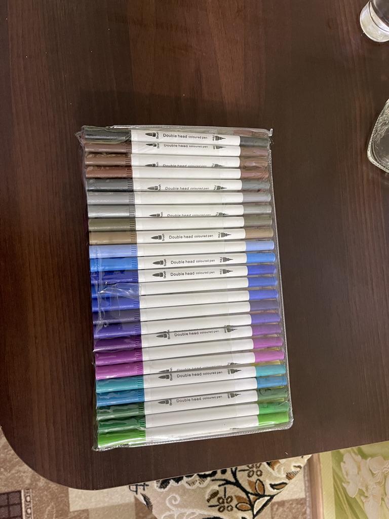 Классные акварельные цветные маркеры. Одна сторона используется как кисточка, друга тонкая ручка, которую можно использовать как для обводки изображения так и использования в качестве ручки для письма. Спасибо поставщику и Джуну