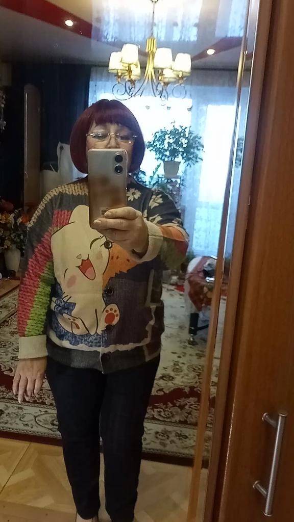 Котеечки!!!!!! 😻😻😻😻😻 " Диманаф"!!!!Супер-кофточка!!!!! Мягкая, немного пушистая, чëткий принт(а это принт, рисунок "накатан" поверх уже готового изделия, так что изнанка однотонная!), пошив, всë-всë-всë хорошо и красиво!!!! Долго выбирала по расцветке-трудный выбор!!!, тк много расцветок и рисунков! Ну, и конечно, спасибо отзывам, Натальи Великой(у нас размеры схожие, ориентируюсь на неë!) и других девочек!!! Села кофточка на мои 102-85-105(+- праздничные кг🥘🧆🥪🎂🥂🤣!) ,рост 164 хорошо, мне нравится, и с брючками хорошо, и с юбочками, думаю, тоже будет смотреться! Ну, просто СПА-СИ-БО!!!!! 💝💝💝