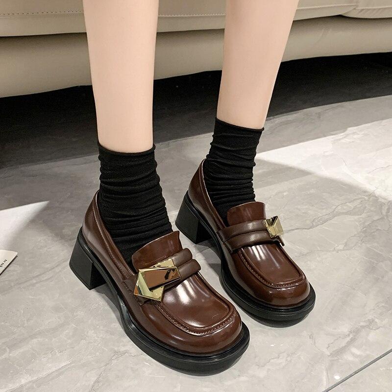 Новые туфли Лолиты, женские туфли без шнуровки на высоком квадратном каблуке, однотонные кожаные туфли-оксфорды для женщин, повседневные лоферы больших размеров