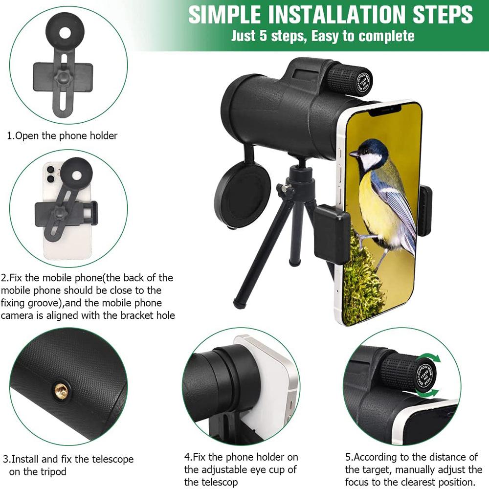 12x50 Hd Монокуляр Телескоп Охота Ручной Со Штативом Телефон Крепление Для Туризма Осмотра Достопримечательностей Концертов Рыбалки Парусного Спорта
