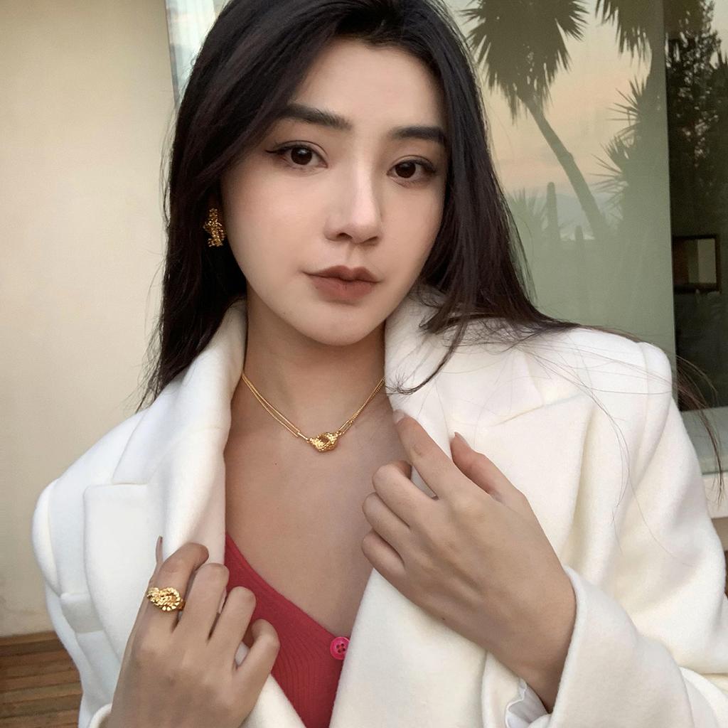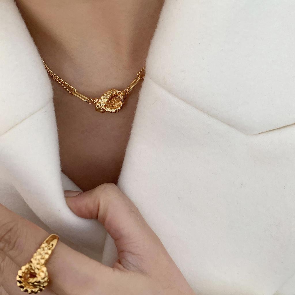 Нишевый дизайн с прохладным ветром и узловатой текстурой. Универсальная двухслойная пара в стиле ретро. Простое и персонализированное ожерелье. Модная женщина.