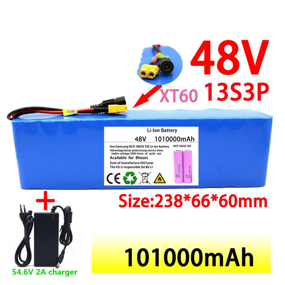Мощный литий-ионный аккумулятор 48 В, 101000 мАч, 1000 Вт, 13S3P XT60, 101 Ач для электрического скутера 54,6 В, с зарядным устройством BMS