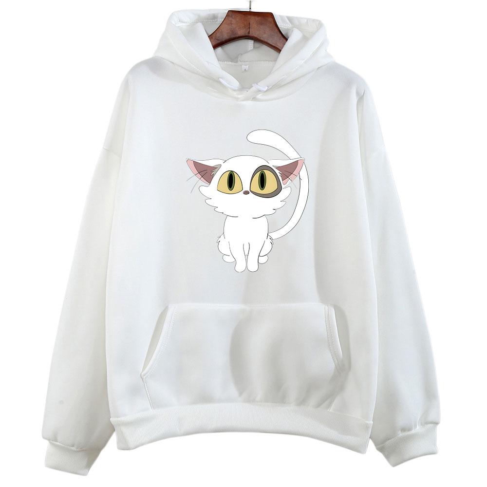 Suzume No Tojimari Daijin, эстетичная толстовка с белым котом, женская толстовка с длинными рукавами в стиле каваи/милый мультфильм, милая Неко, смотрящая на тебя