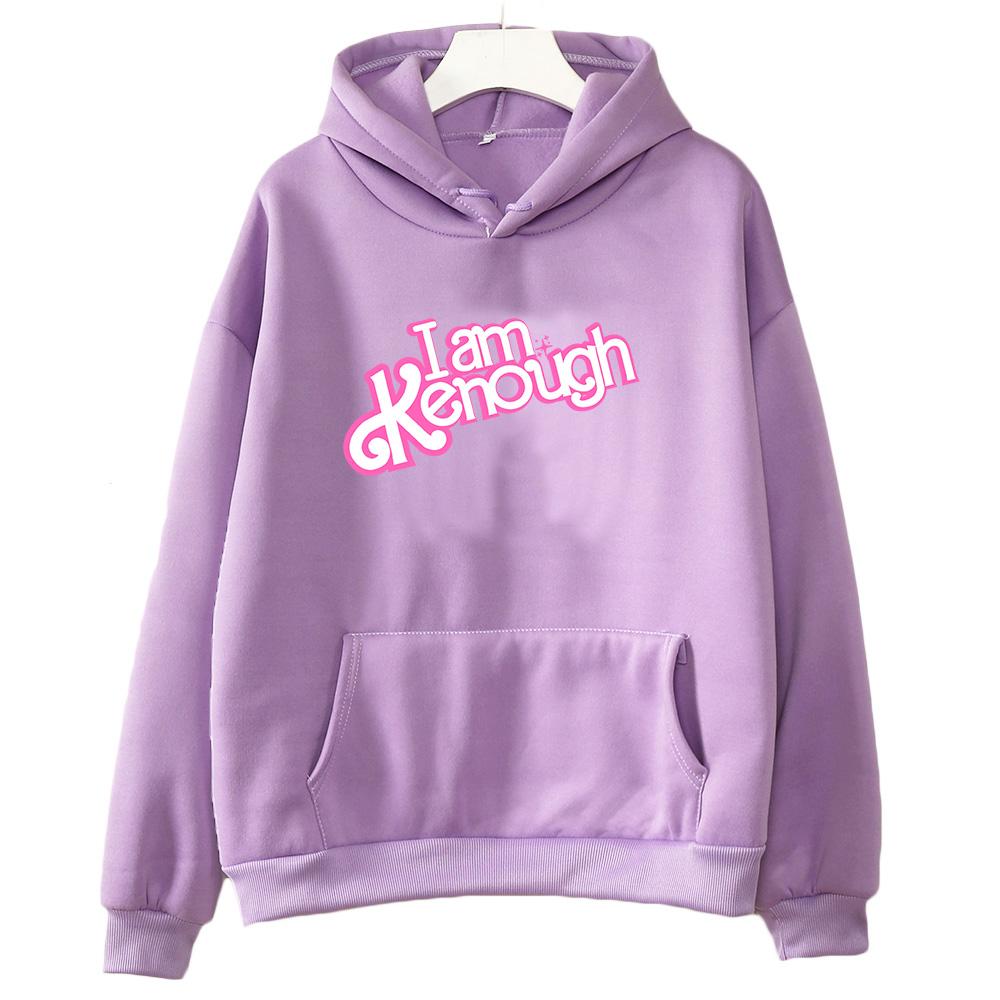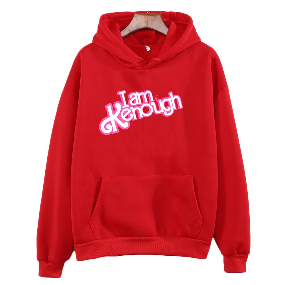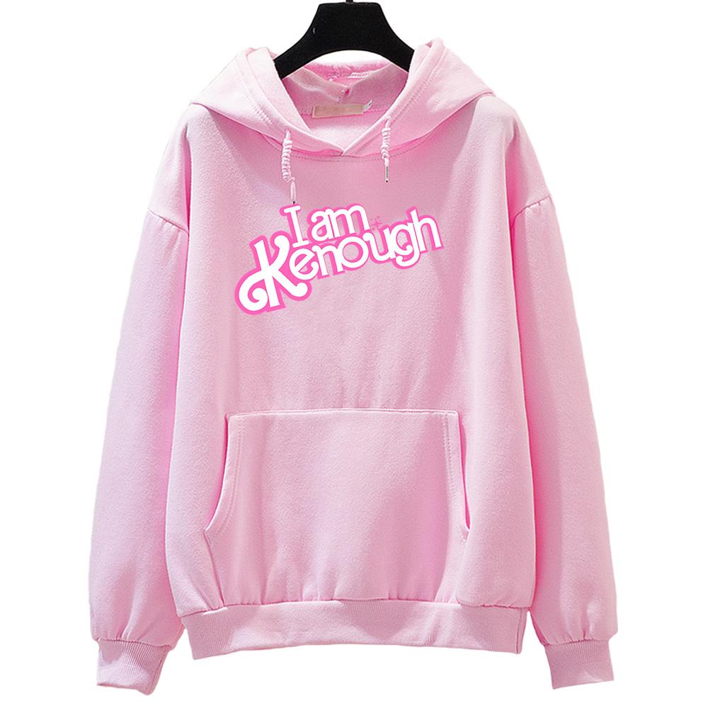 Ярко-розовые толстовки I Am Kenough Barbenheimer, женские повседневные флисовые осенние толстовки с карманами и длинными рукавами, пуловер с героями мультфильмов, одежда для девочек
