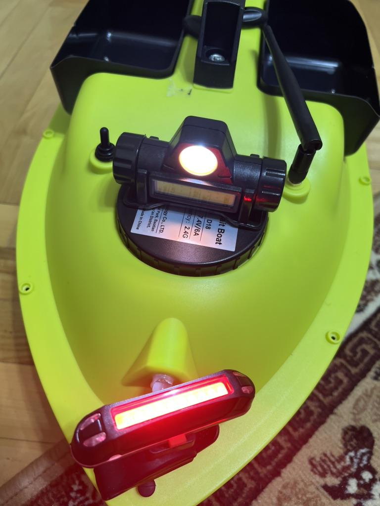 1 передний белый свет и 2 задних синих ночных фонаря для ночной рыбалки и кормления.