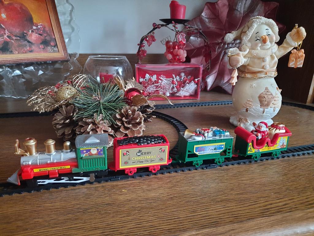 Хорошенький рождественский декор. Поезд приехал целый, хотя коробка была помята. Милота. Внукам понравится. Продавца рекомендую. Спасибо Джуму.