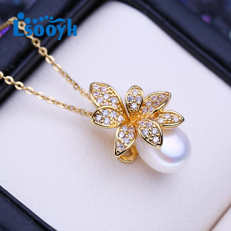 LSOOYH Натуральный пресноводный большой рисовый жемчуг, классический кулон с цветком, ожерелья для женщин и девочек, подарок на день рождения