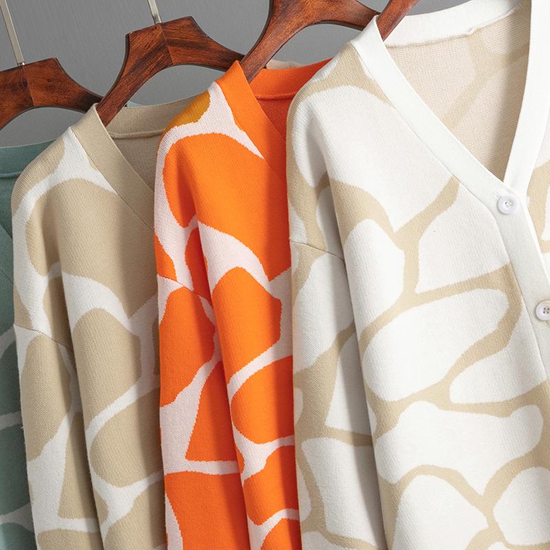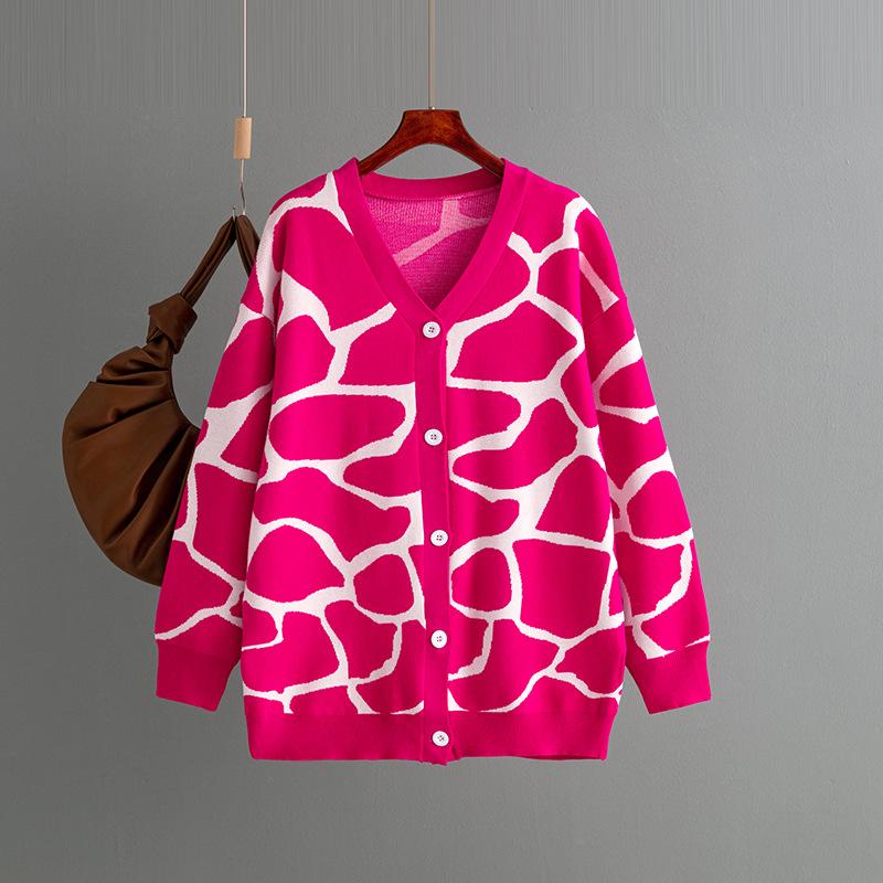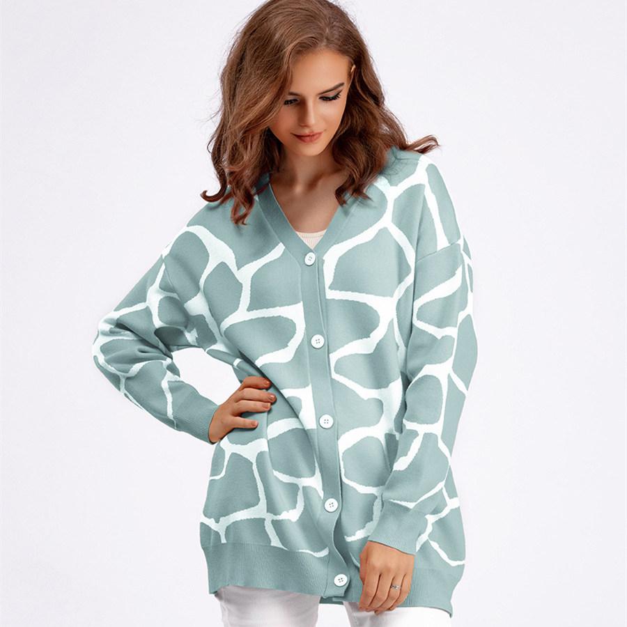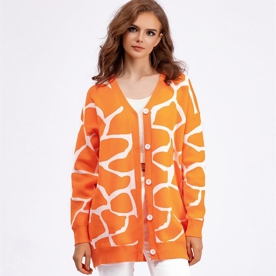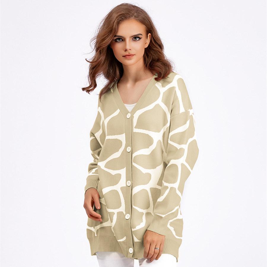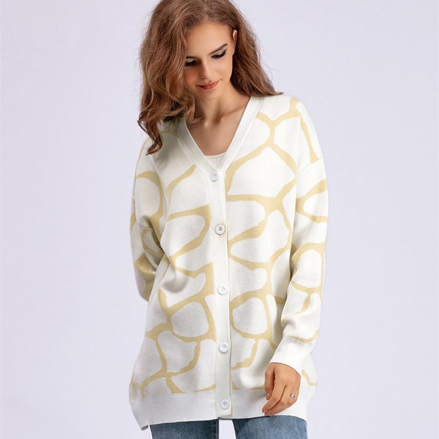 Женский осенне-зимний жаккардовый свитер с v-образным вырезом и длинным узором, свободное вязаное пальто