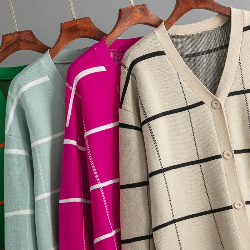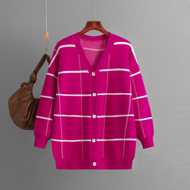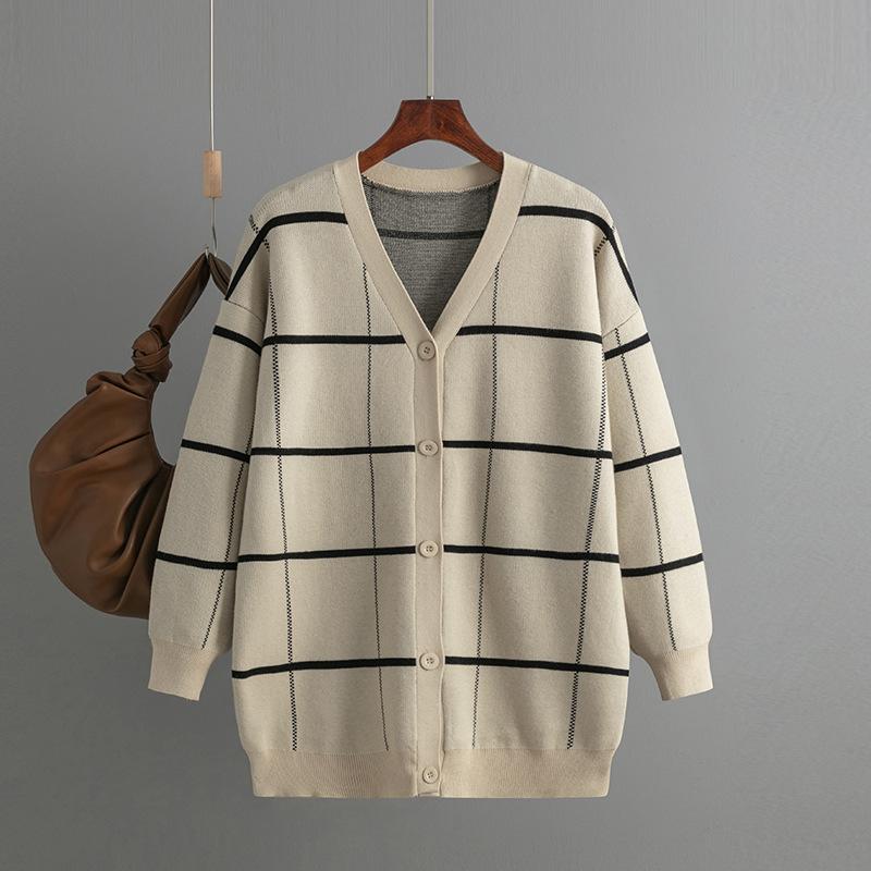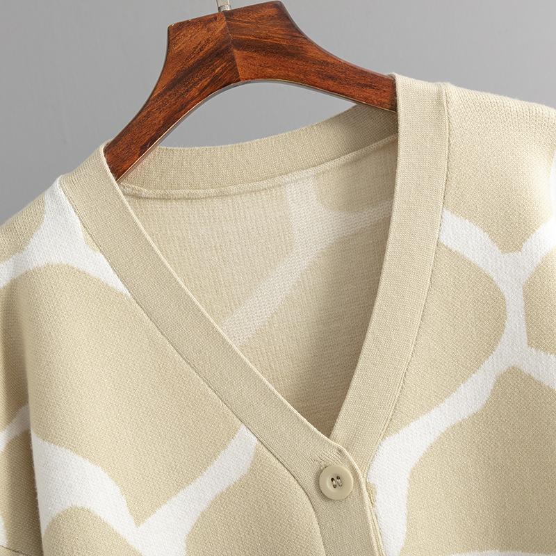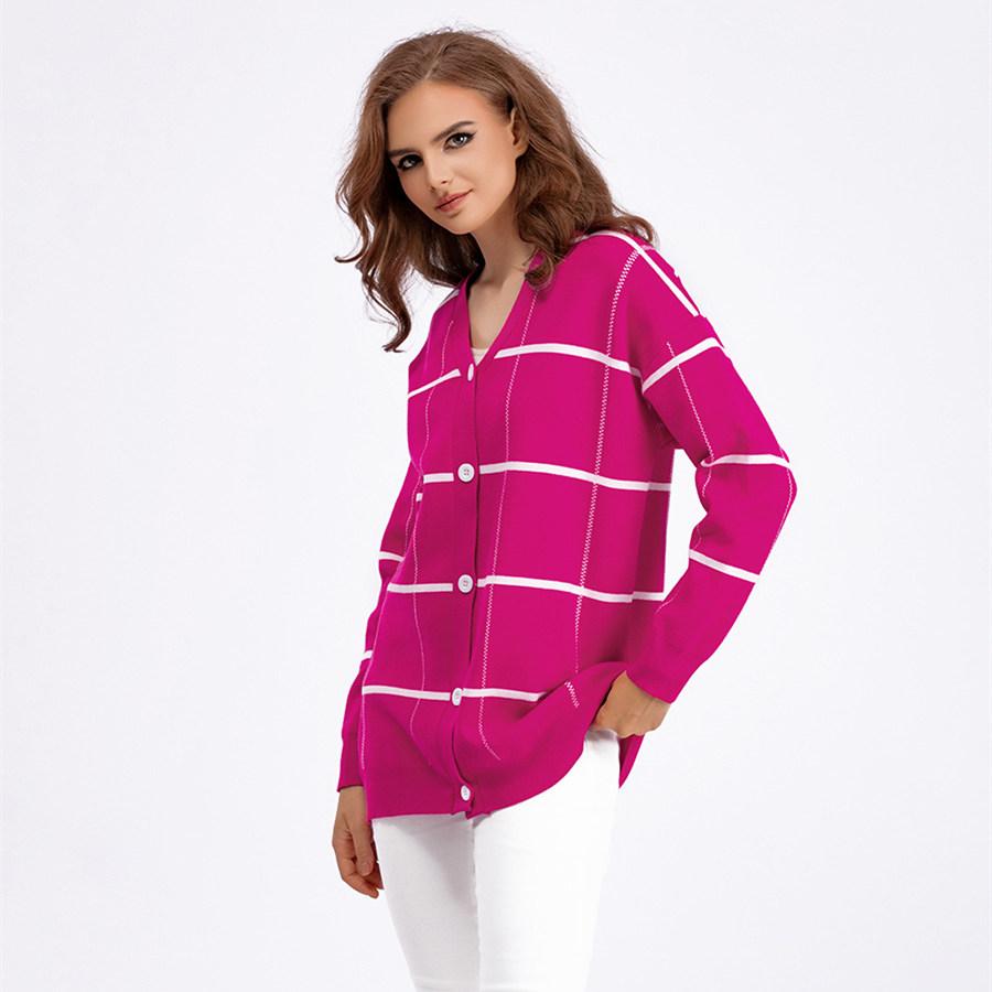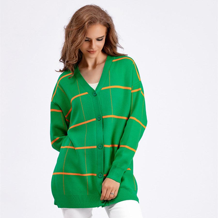 Женский осенне-зимний жаккардовый свитер с v-образным вырезом и длинным узором, свободное вязаное пальто