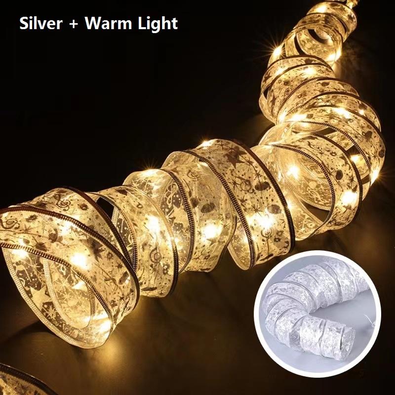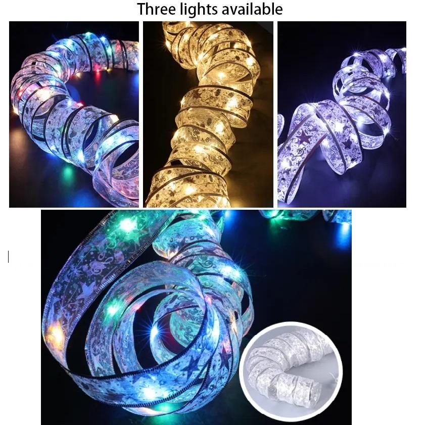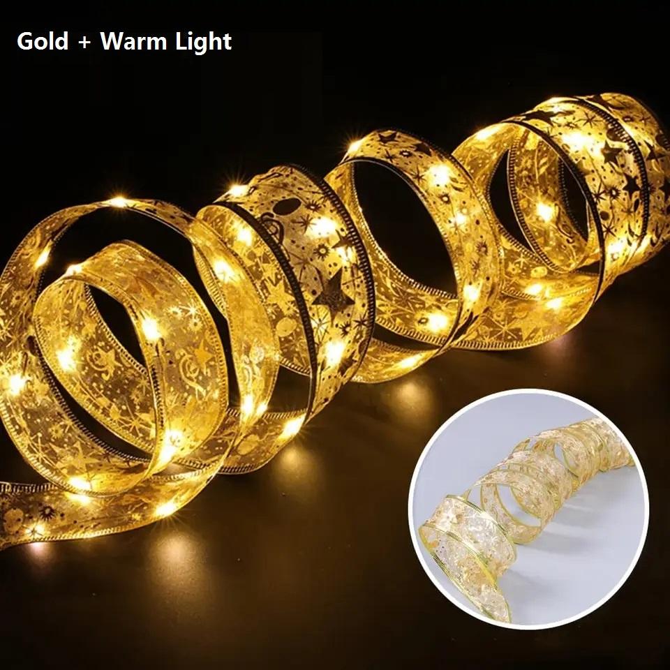 10 м Рождественская лента-гирлянда для украшения рождественской елки, двухслойная светящаяся лента с золотым тиснением, лампа, кружево, светодиодные фонари «сделай сам»