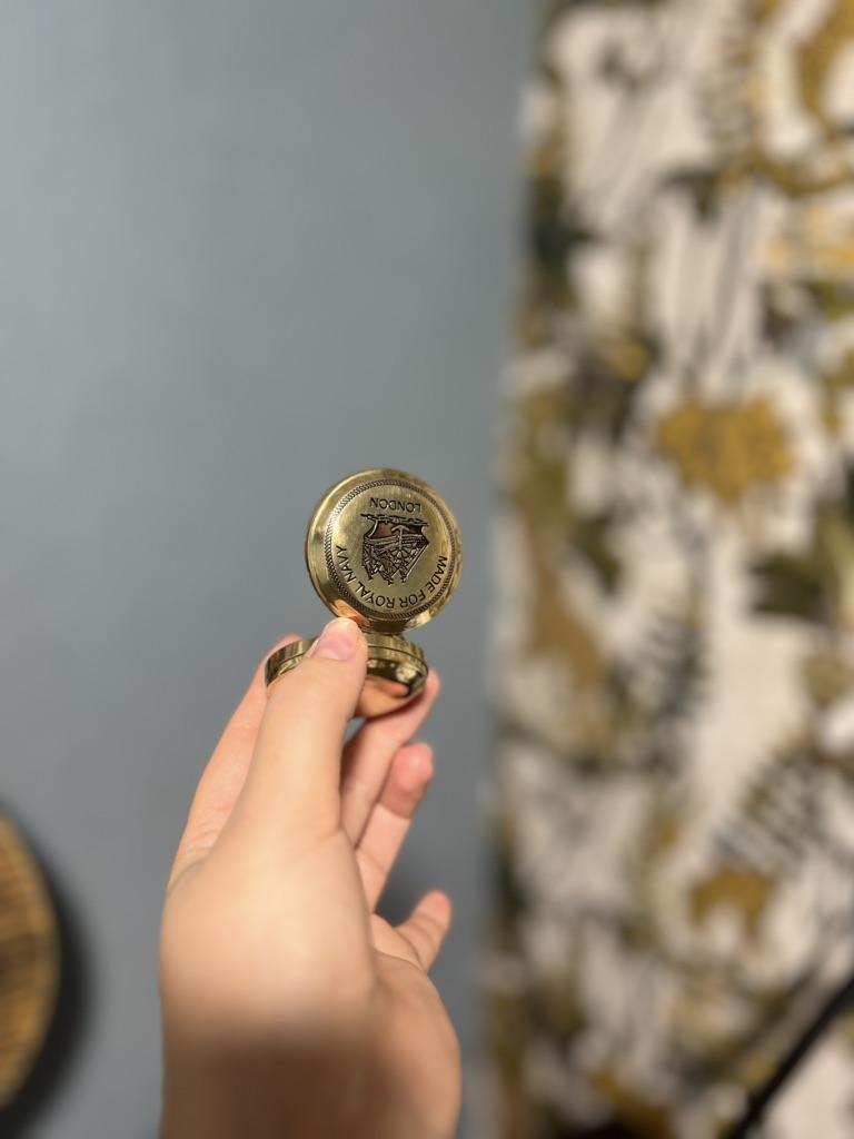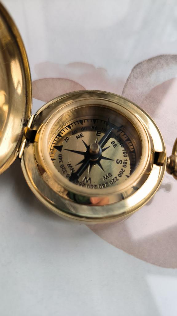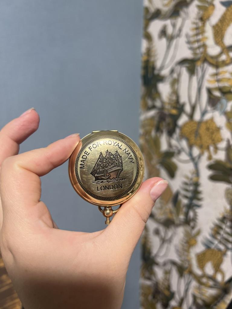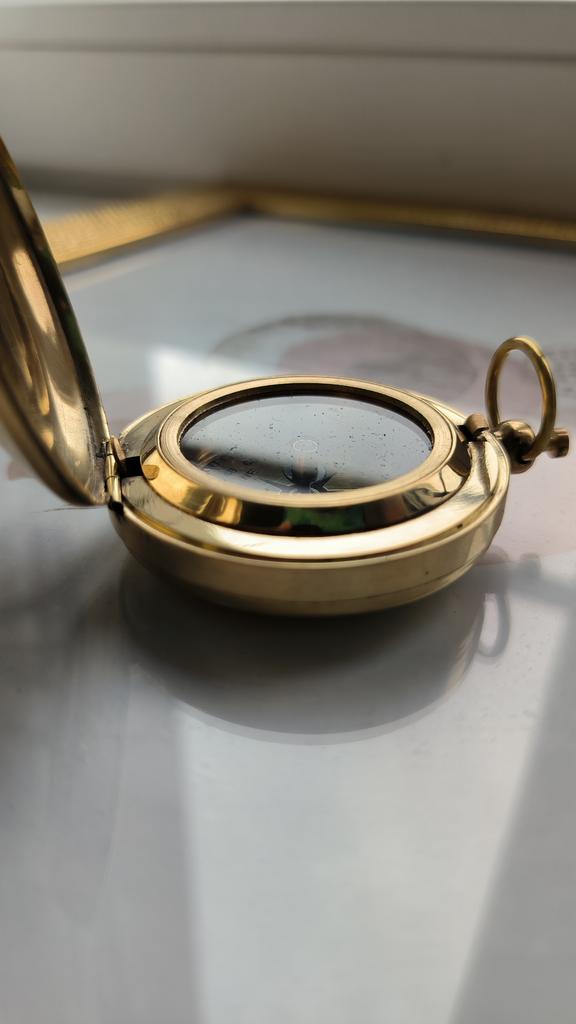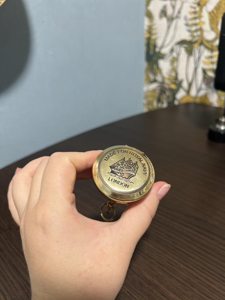 Красивейший латунный компас благородного цвета в винтажном стиле 🔥 🧭 Закрывается с красивым характерным негромким щелчком, как крутые карманные часы. 🧭 Диаметр 4,5 см. 🧭 Красивая гравировка рельефная на крышке 🤌🏽, не просто рисунок или наклейка. 🧭 Компас в рабочем состоянии, свою функцию точно выполняет. 🧭 Есть держатель, можно закрепить компас к брелку, к брюкам или рюкзаку. Очень довольна. Буду дарить брату на День рождения. Он у меня путешественник) 🧳