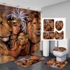 4 шт. наборы занавесок для душа серии Lion для ванной комнаты, нескользящие коврики для ванной комнаты, крышка для унитаза, коврик для ванной