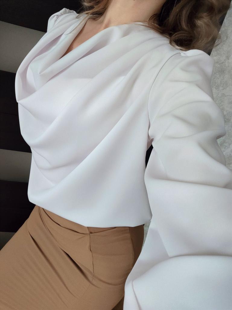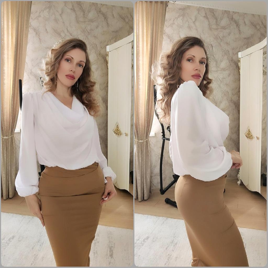 ЭЛЕГАНТНАЯ БЛУЗКА от GMXIA TOP Clothing🤍 В ассортименте 6 цветов, моя белоснежная🤩 Размеры в наличии от S до 3XL 🎗️На мне S, села свободно по всем параметрам, рукава некороткие, длина достаточная, чтобы вещь заправить. Мои параметры 91-57-92, рост 167 см, вес 54 кг В этом размере подойдёт на наш 42-44, возможно даже и на 46 сядет хорошо. ⭐Фабричное качество, пошив и отделка без нареканий. Ткань лёгкая, струящаяся, тактильно похожа на шифон, не тянется, в белом цвете есть просвет. Модель и все детали изделия полностью соответствуют промофото💯 Нарядная вещь, мне пригодится👌 Рекомендую👍
