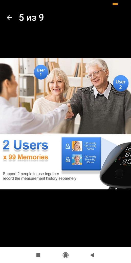 Тонометр красивый , но бестолковый . Показания совершенно разнятся с моим стационарным японским "A&D Medical" , постоянно , надо и не надо при подведении результатов говорит фразу - "В прошлый раз" , а звук даже действуя по инструкции , отключить невозможно . Продавец позиционировал свой товар с возможностью полЬзоваться двум пользователям , чего опять же нет и помине , только одному . Хочу сказать БОЛЬШОЕ СПАСИБО службе поддержки за содействие и оперативную помощь в возврате моих денег .