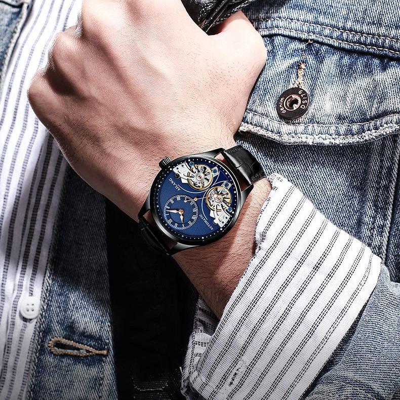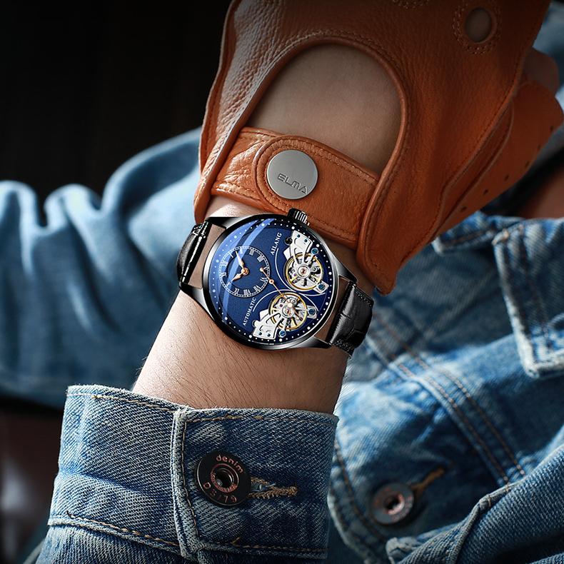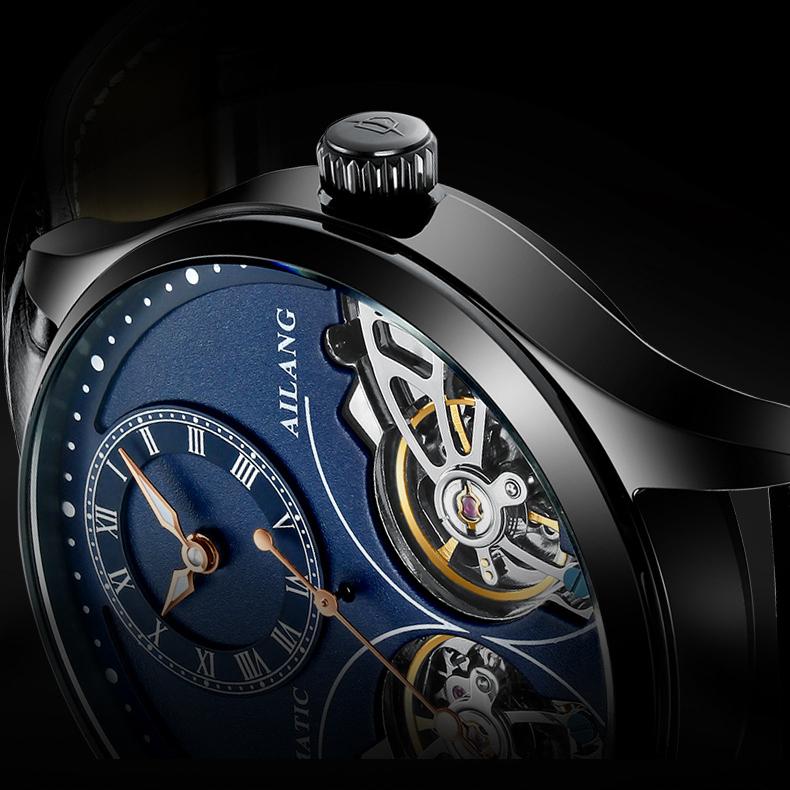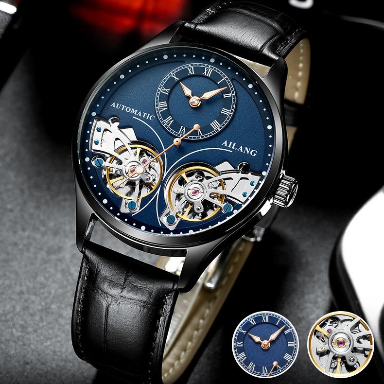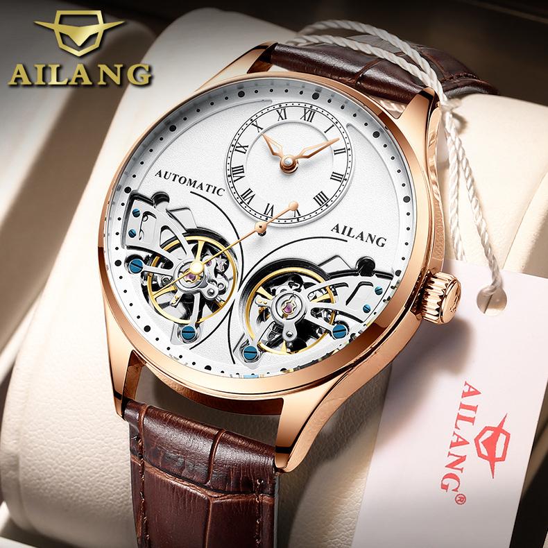 AILANG новые оригинальные швейцарские автоматические механические часы с двойным турбийоном мужские водонепроницаемые часы