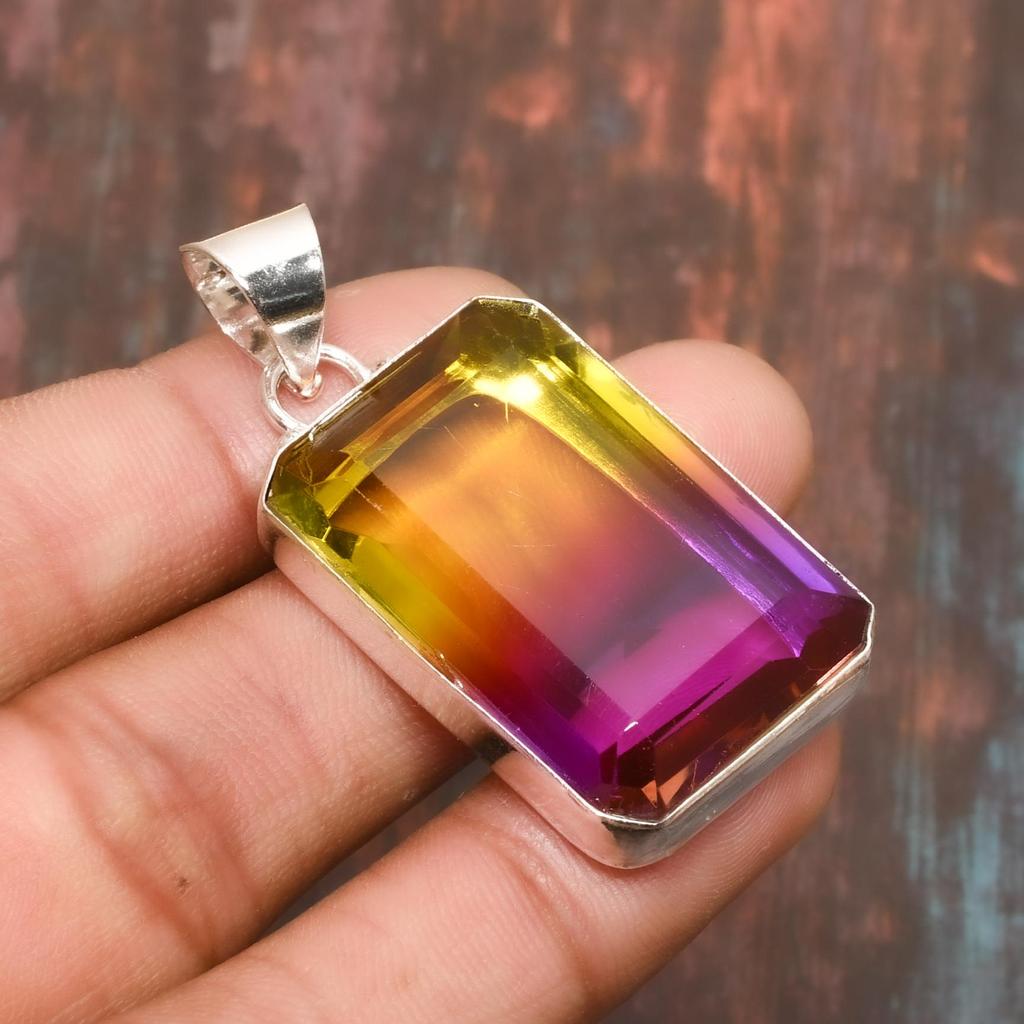 Роскошная двухцветная подвеска с турмалином ручной работы из стерлингового серебра 925 пробыЮвелирный кулон