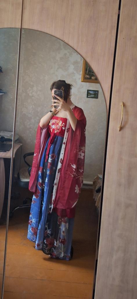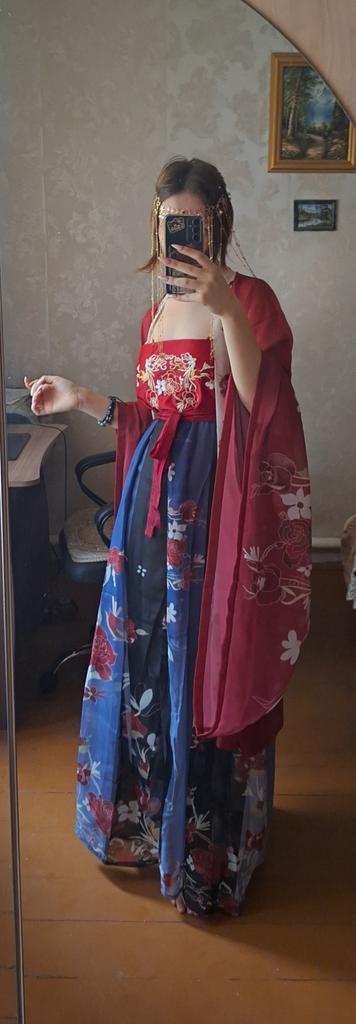 ханьфу великолепное! Я испугалась, что будет маломерить, заказала на два размера больше. Немного большевато, но сидит хорошо. На рост 175 длина подходящая. Ткань замечательная, очень мягкая кожу не раздражает. В комплекте ещё положили чудесную шпильку! Заказала на выпускной, ни о чём не жалею!(украшение на голову я заказывала отдельно, оно не в комплекте)