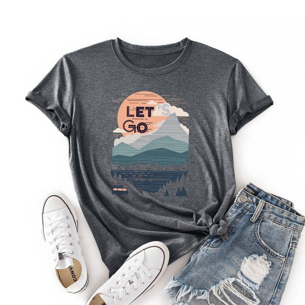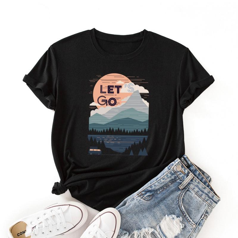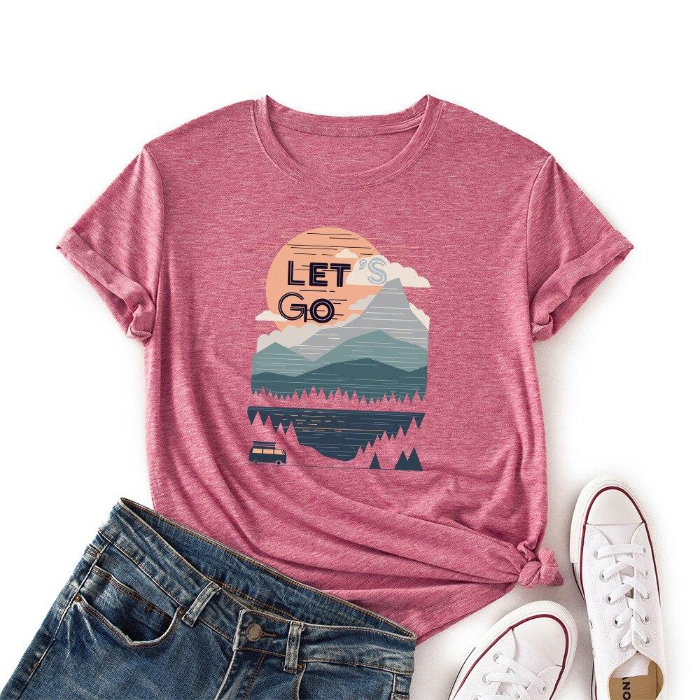 LingMeng Повседневная модная креативная летняя женская футболка с принтом заката, свободные женские топы с круглым вырезом, «Наслаждайся жизнью»