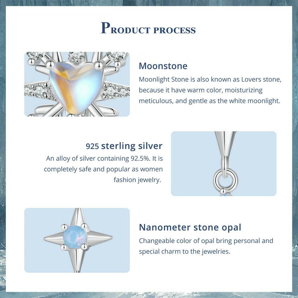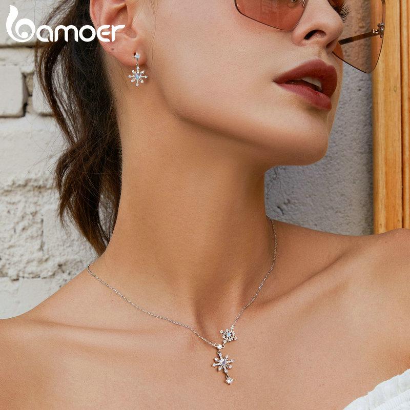 BAMOER стерлингового серебра 925 пробы снежинка серьги-гвоздики в форме сердца серьги с опалом для женщин нежные изящные ювелирные изделия подарок