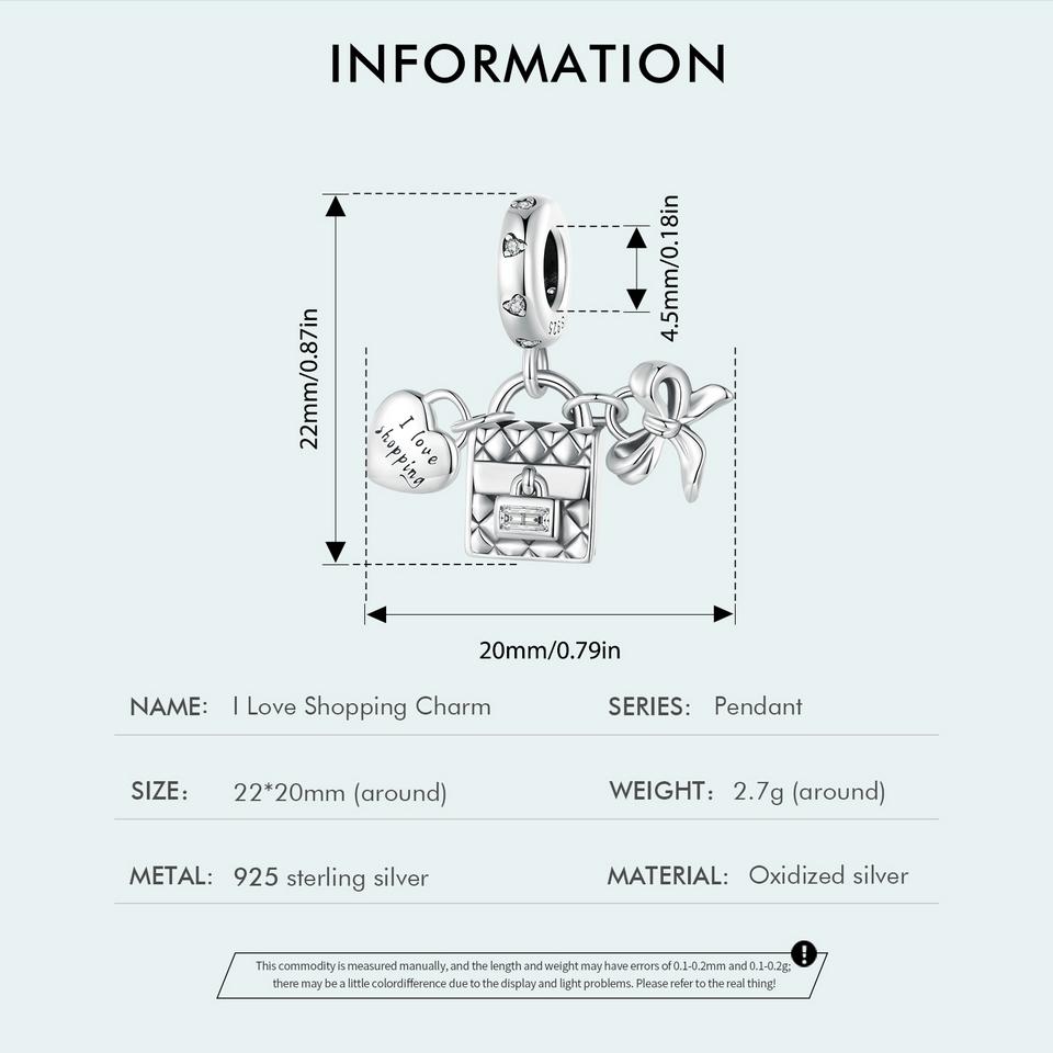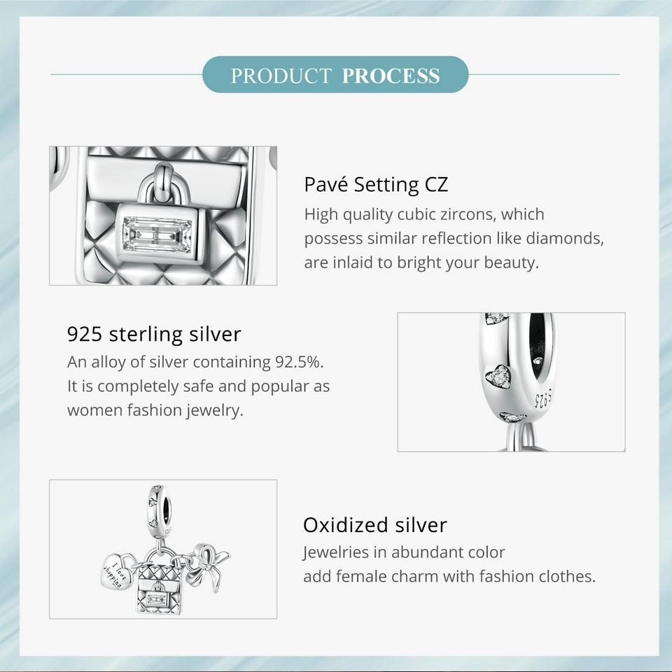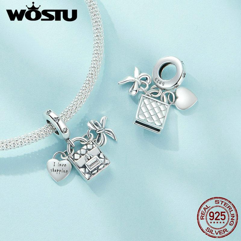 WOSTU Стерлингового Серебра 925 пробы, подвески для покупок, сумка и бусины с бантом, подходят для оригинальных браслетов, женские ювелирные изделия своими руками
