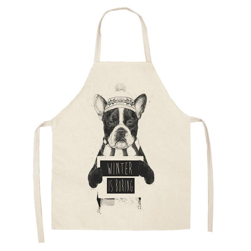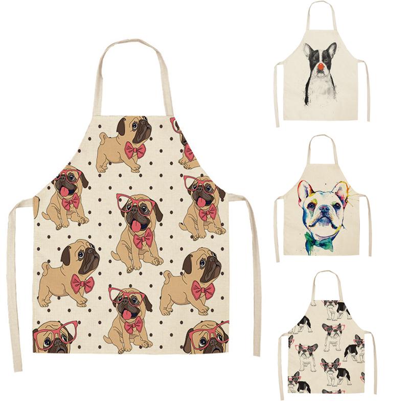Кухонные льняные фартуки для собак в стиле бульдога, унисекс, нагрудник для ужина и вечеринки, забавный сарафан для чистки, фартук без рукавов, кухонные аксессуары