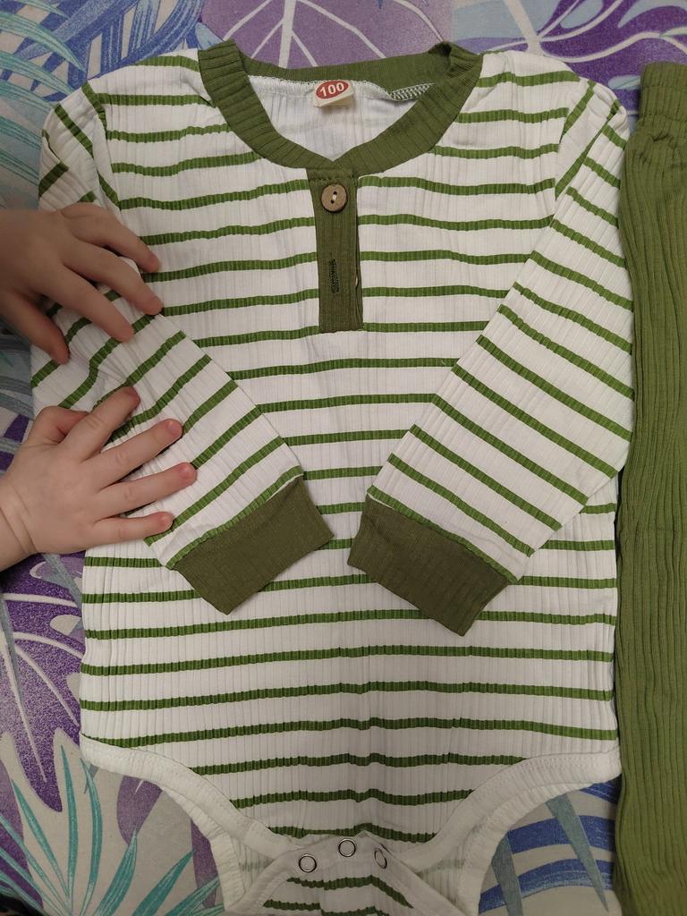 Хороший костюм, на пол года штанишки хорошо, бодик длинноват, так неплохо, советую купить кому нужно