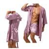 Мужской шелковый атласный пижамный комплект с коротким рукавом, кимоно, кардиган и шорты, одежда для сна, домашняя одежда