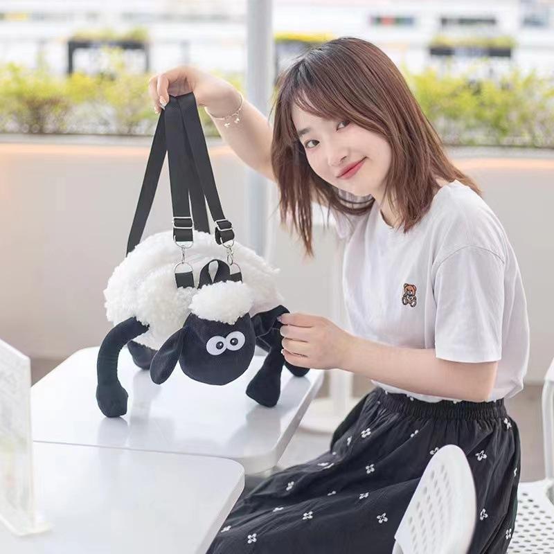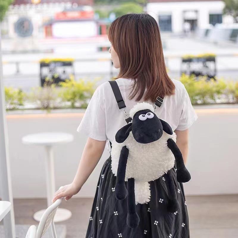 Рюкзак с изображением овцы онлайн, красная плюшевая игрушка, милый рюкзак для куклы Мяньян, черно-белая игровая кукла с ягненком