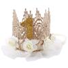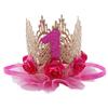 Детская корона с блестками для девочек, годовалая корона, шляпа принцессы для дня рождения, розовое золото, роза, декор для вечеринки, кружевная сетка