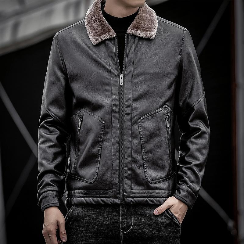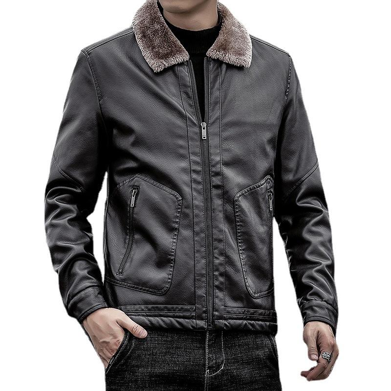 Зимняя кожаная мужская куртка, новая мужская куртка среднего и пожилого возраста с лацканами из плюшевого меха и мехом в сочетании с большой мужской курткой из искусственной кожи большого размера