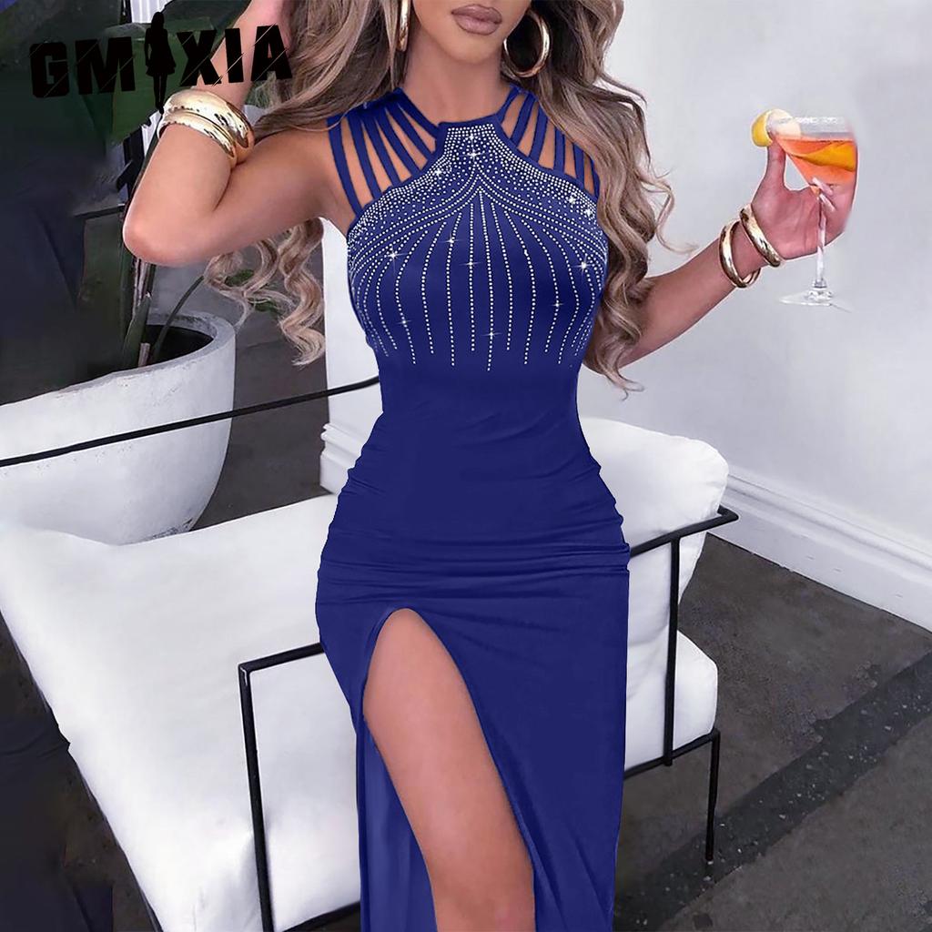 GMXIA Женская мода на лето и весну, однотонное платье без рукавов с подтяжками и высокой талией, коктейльные и вечерние платья