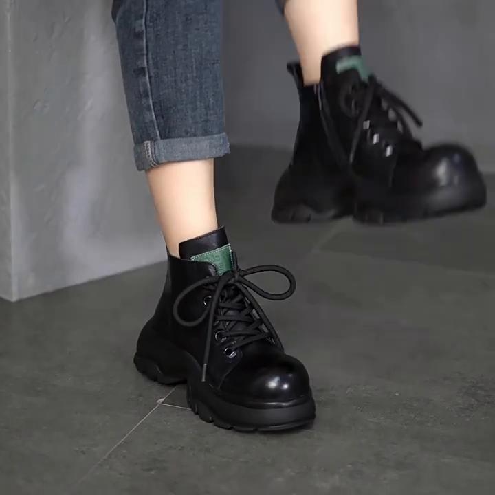 Johnature/ботинки martin на толстой подошве, женская обувь, винтажные короткие ботинки с круглым носком и молнией по бокам, на шнуровке — купить товар онлайн с бесплатной доставкой по всему миру!