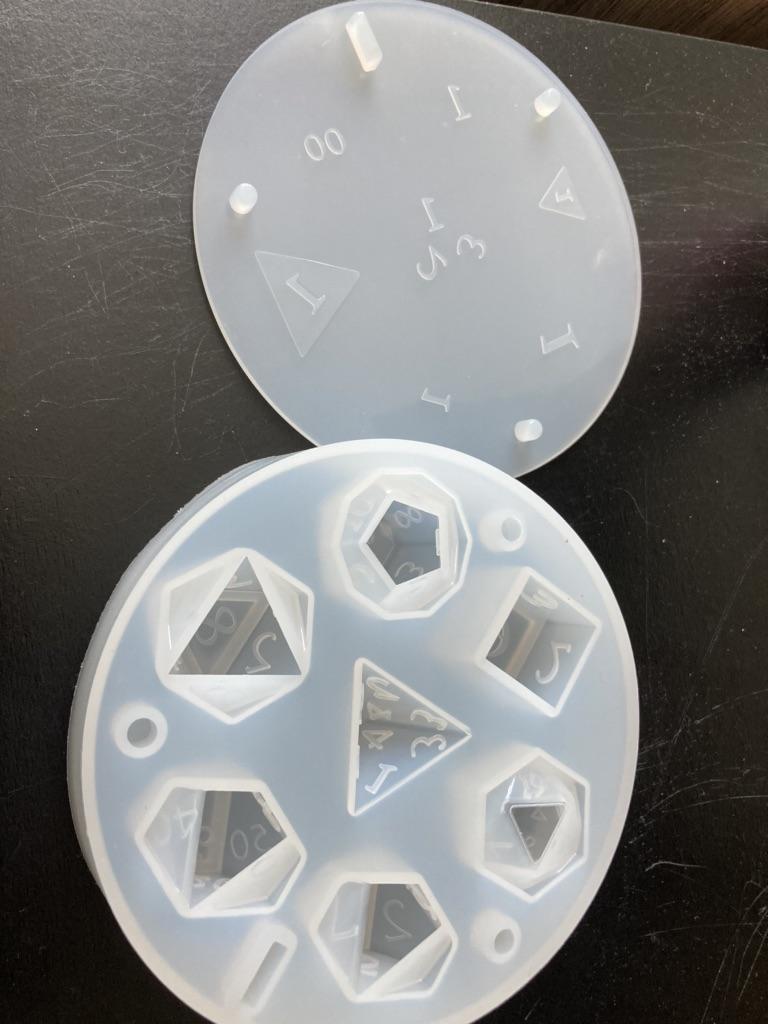 Классная формочка для дайсов. Уже успела сделать первый набор, но не рассчитала, поэтому не на всех есть отпечатка первых номеров. Очень довольна покупкой