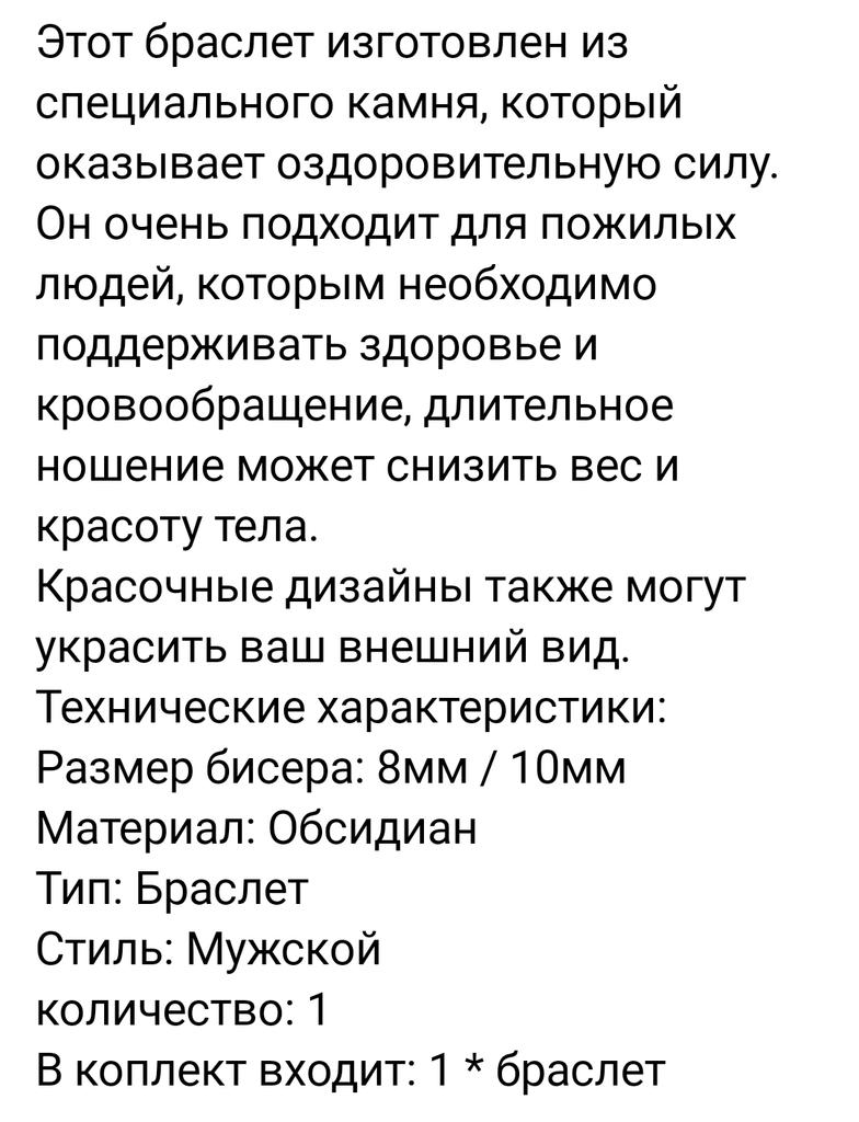 ✔️Браслет из трёх видов камней: тигровый глаз, обсидиан и гематит ✔️Отхватила за 1 рубль по акции "Товары дня" в 12.00 по мск ✔️Я взяла самый маленький диаметр камушков 6 мм ✔️Камушки нанизаны на эластичную леску ✔️На моё запястье 16 см сидит с лёгкой свободой, на большее запястье будет сильно облегать и давить ✔️В описании указаны полезные свойства этих камней 😊ЯоченьдовольнаЯ 😊 и рекомендую, кому подойдёт по размеру