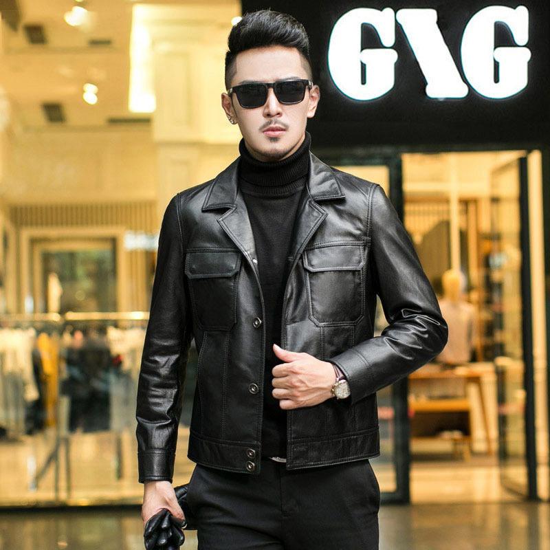 Осенняя мужская кожаная куртка на пуху, мотоциклетная куртка из телячьей кожи с верхним слоем, кожаная куртка, короткая повседневная трендовая куртка — купить товар онлайн с бесплатной доставкой по всему миру!