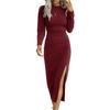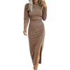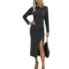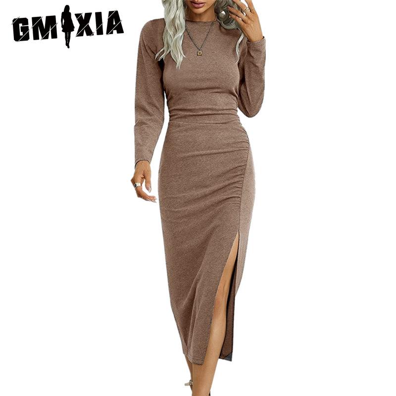 GMXIA Женская мода лето весна однотонный принт с длинным рукавом и круглым вырезом с высокой талией повседневные платья
