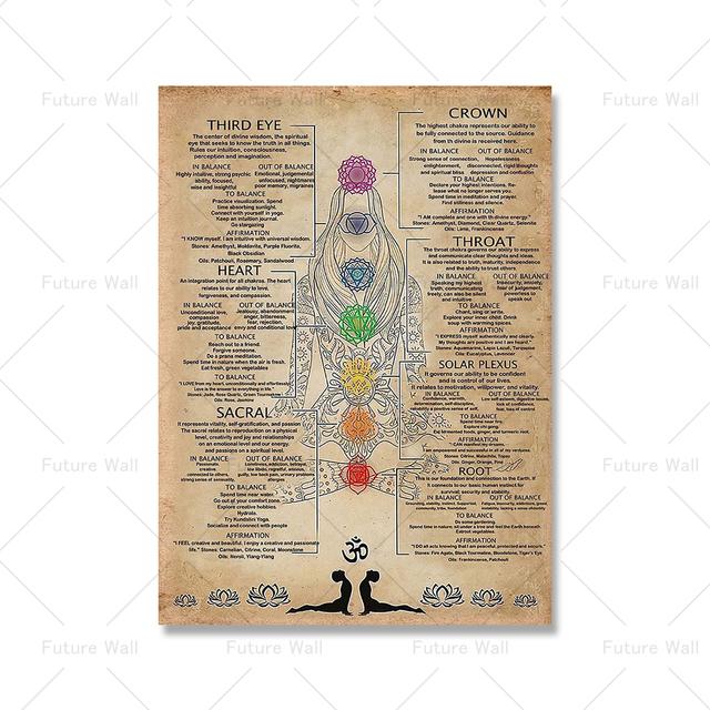 Руководство по 7 чакрам, атласный плакат, йога, посредничество, настенная художественная печать, символы здоровой йоги