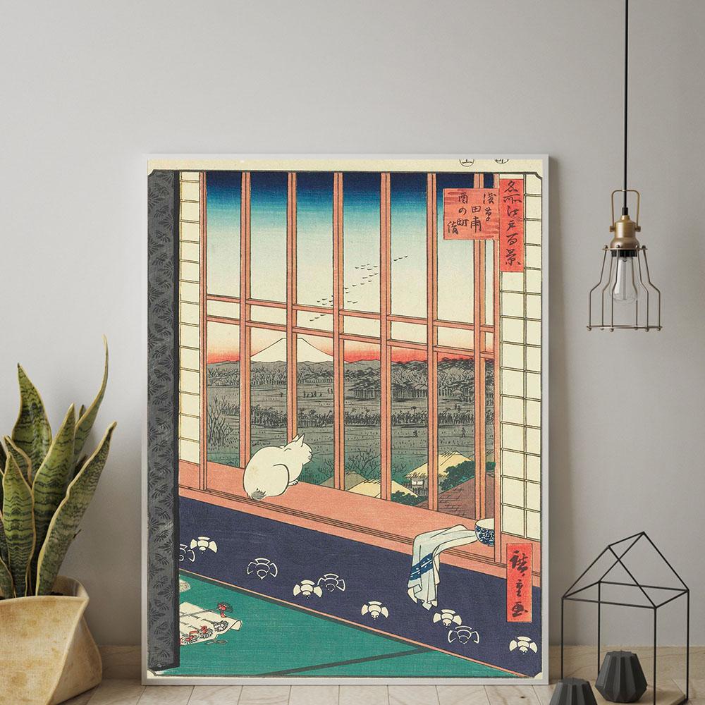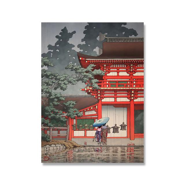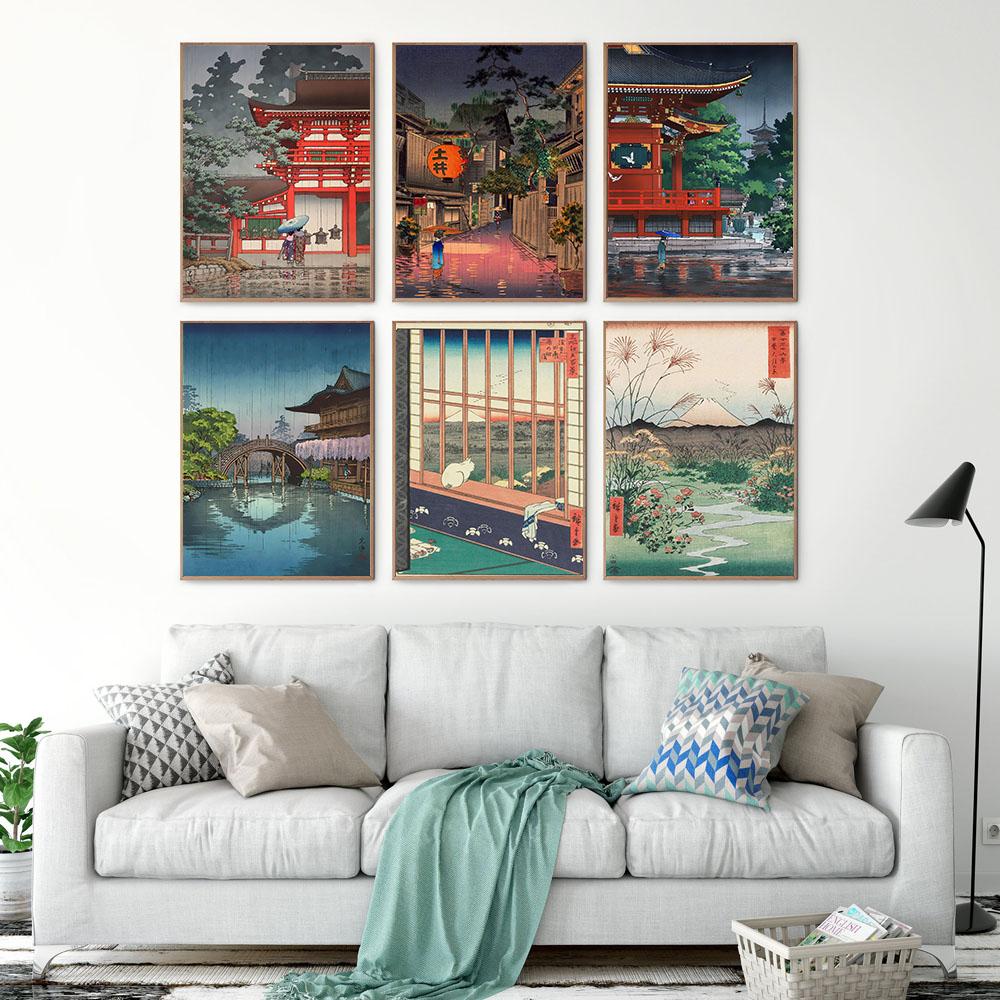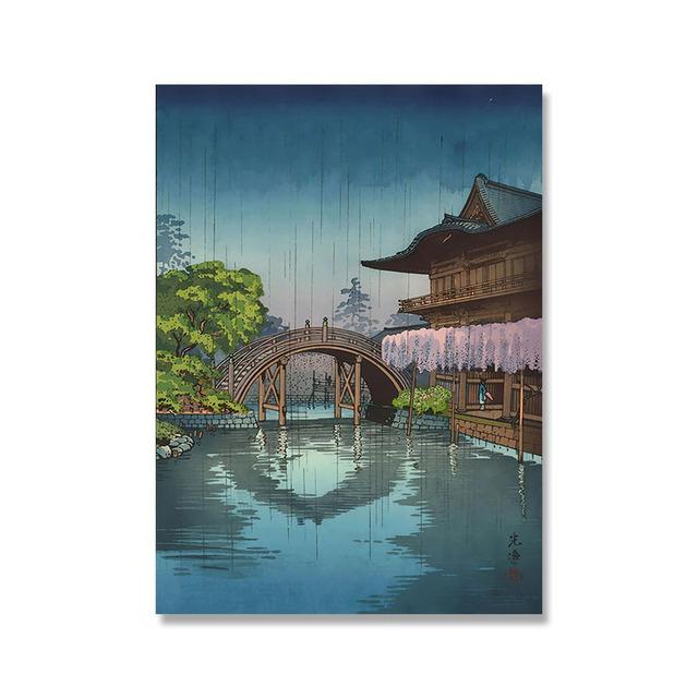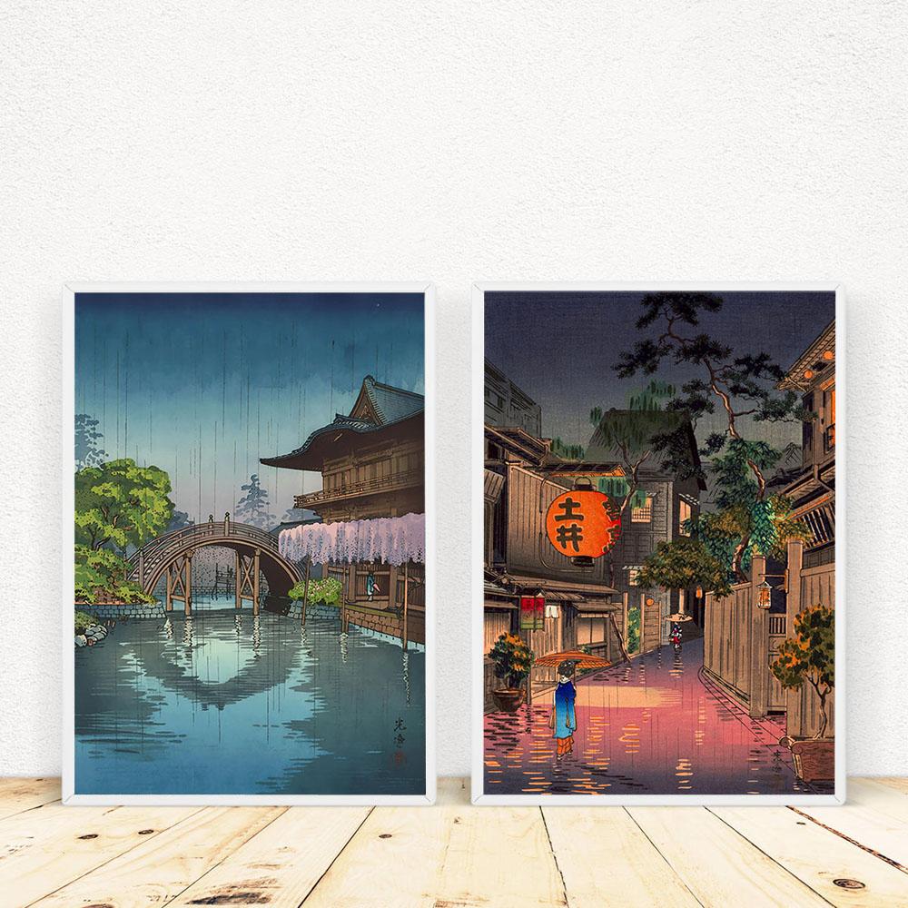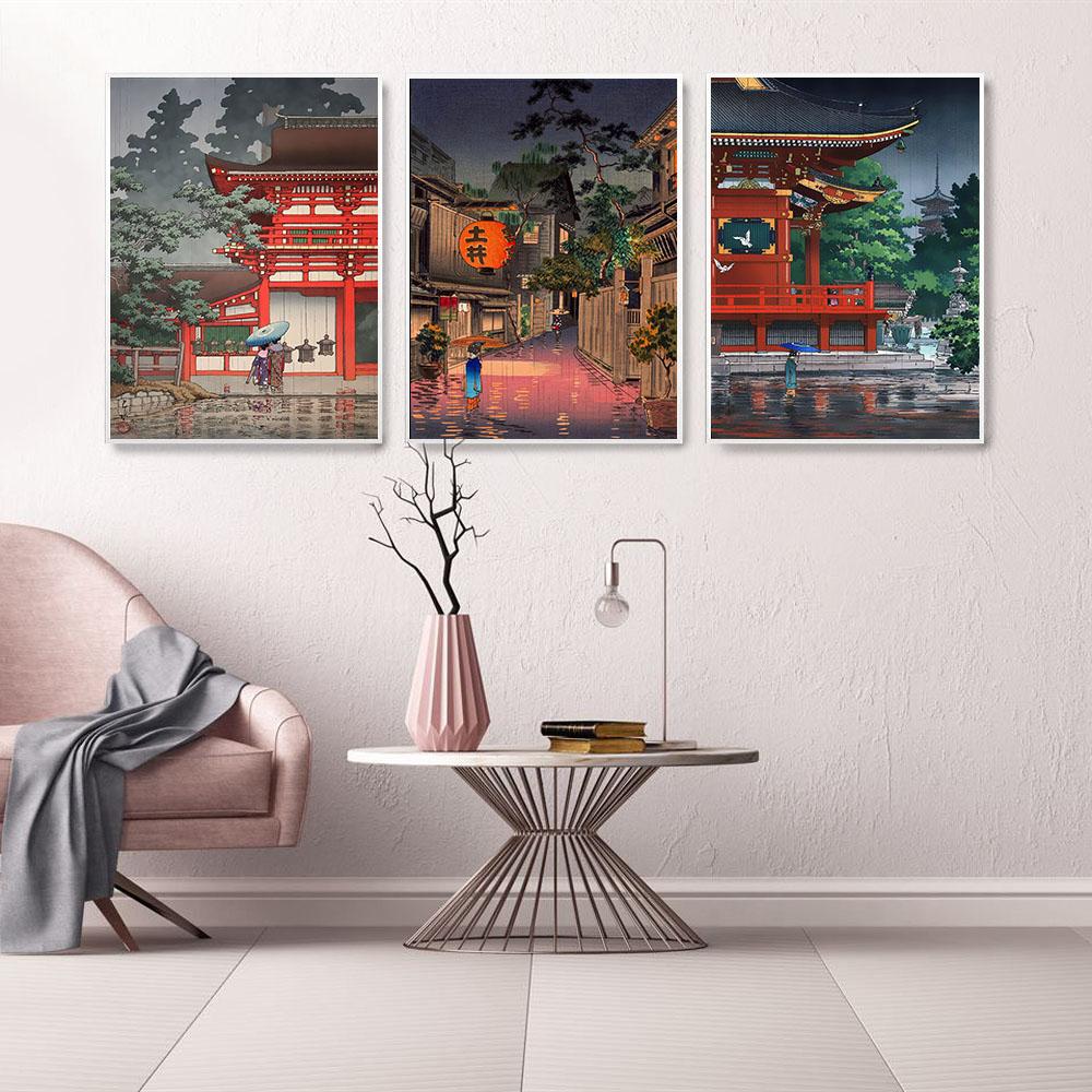 Японское Искусство Картина Маслом Токио Дождь Уличный Пейзаж Гостиная