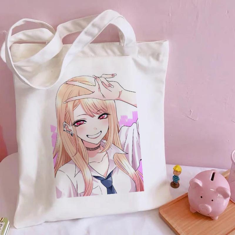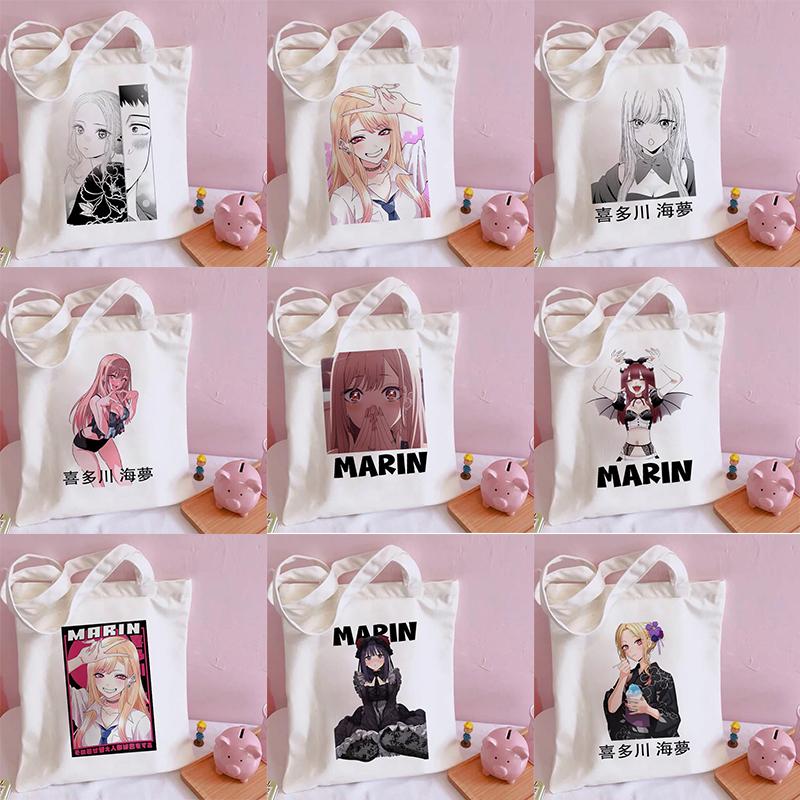 Marin Japan Anime My Dress-Up Darling Manga Многоразовая сумка для покупок Женские холщовые сумки-тоут с принтом Эко-сумка Сумки для покупок Сумки на плечо