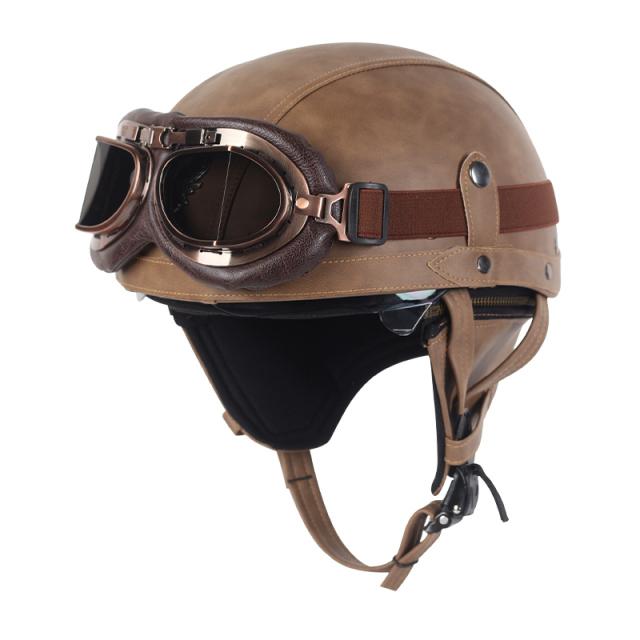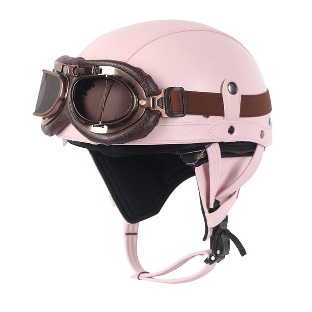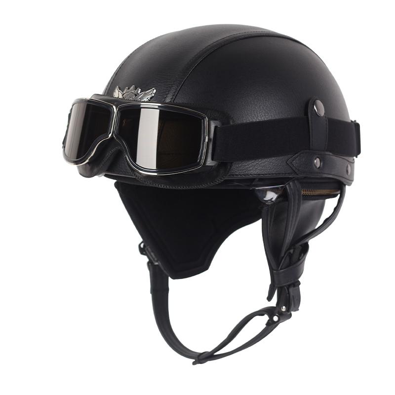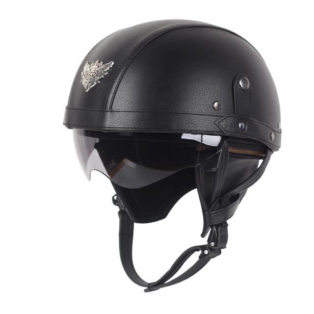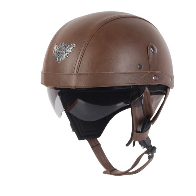 Мотоциклетный шлем, кожаный, винтажный, Casco, мотоциклетный, с открытым лицом, ретро, полушлем, чоппер, байкерский пилот, размер в горошек M-Xl