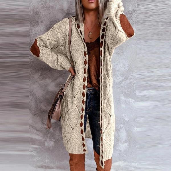 Женский вязаный кардиган с длинным рукавом, повседневный свитер с капюшоном, винтажный элегантный свитер, пальто, осень-зима, уличная одежда, свитер с капюшоном, пальто большого размера