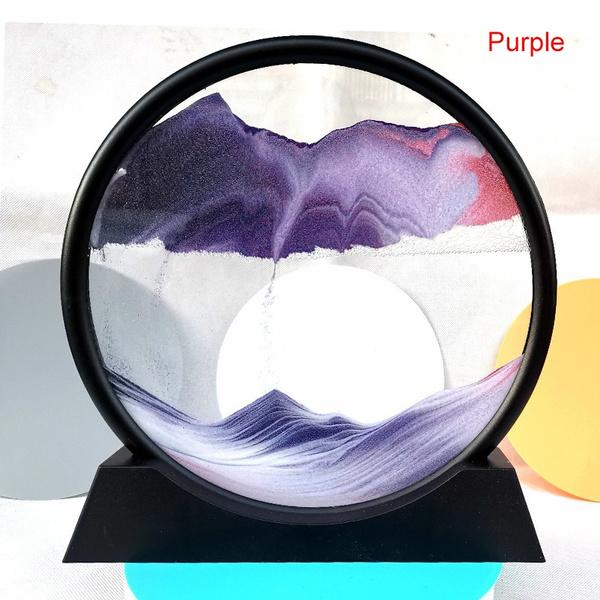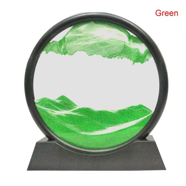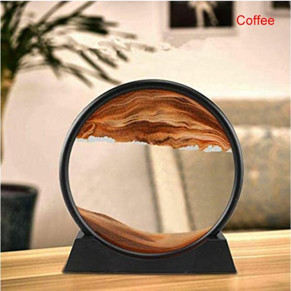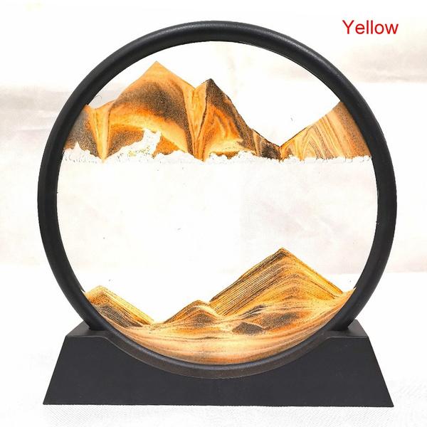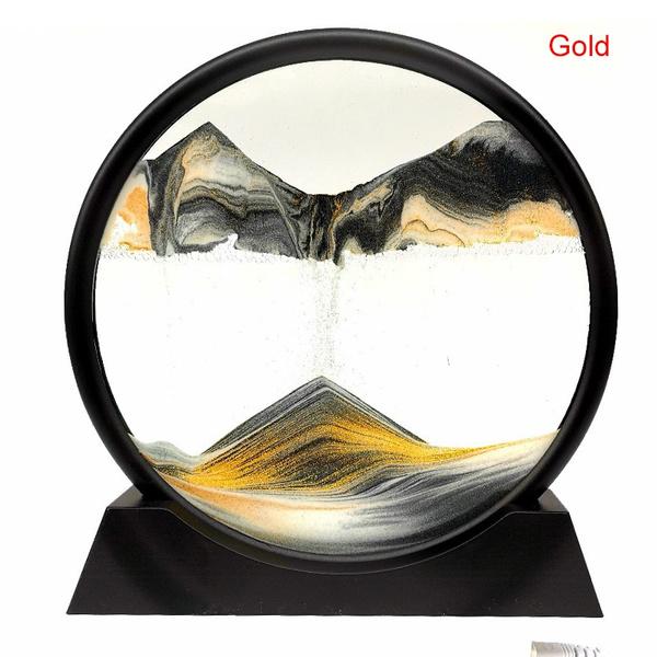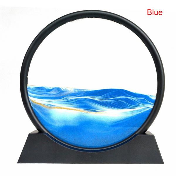 Динамическое искусство из песка Жидкое движение, Художественная картина из движущегося песка Круглый стеклянный дисплей Рамка из струящегося песка Расслабляющий рабочий стол Домашний офис Рабочий декор 3D