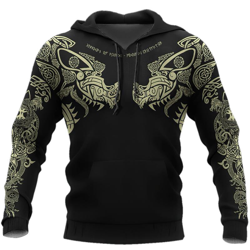 Весна-Осень, модные мужские толстовки в стиле ретро, мужские толстовки с 3D принтом викингов, волка и дракона, пуловеры с длинными рукавами