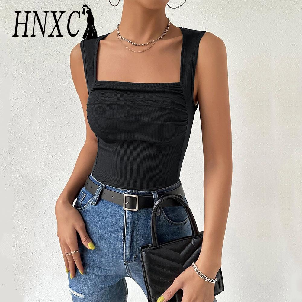 HNXC Женские модные повседневные летние однотонные блузки и рубашки без рукавов с квадратным воротником и принтом