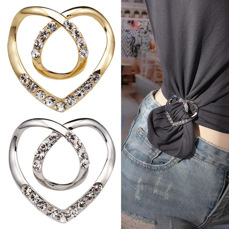 Новая мода угловой подол талии завязанные броши кристалл металлический хиджаб шарф кольцо рубашка на пуговицах футболка с фиксированной пряжкой аксессуары
