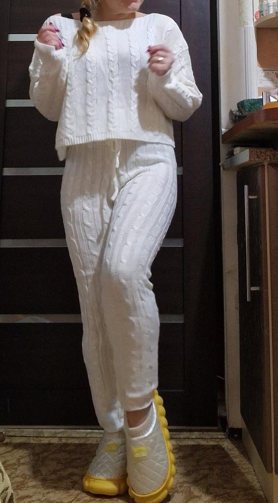 Осенний женский повседневный вязаный комплект, сексуальный комплект из двух предметов, свитер с длинными рукавами, короткий пуловер, укороченный топ, комплект с длинными штанами на завязках — купить товар онлайн с бесплатной доставкой по всему миру!