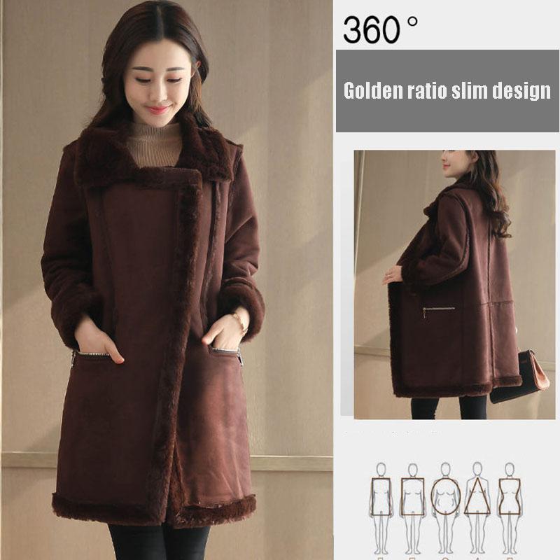 Зимнее пальто из искусственной овчины, женское длинное теплое замшевое теплое толстое пальто, парка с подкладкой из искусственного меха, Тренч больших размеров