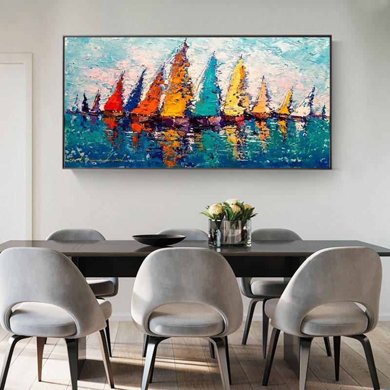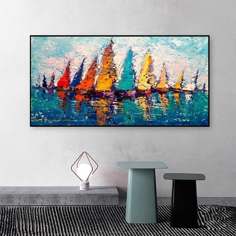 Абстрактные пейзажи, парусная лодка, красочная картина на холсте, корабль, лодка, постеры и принты, настенные художественные картинки для Cuadros, декор для гостиной без рамки